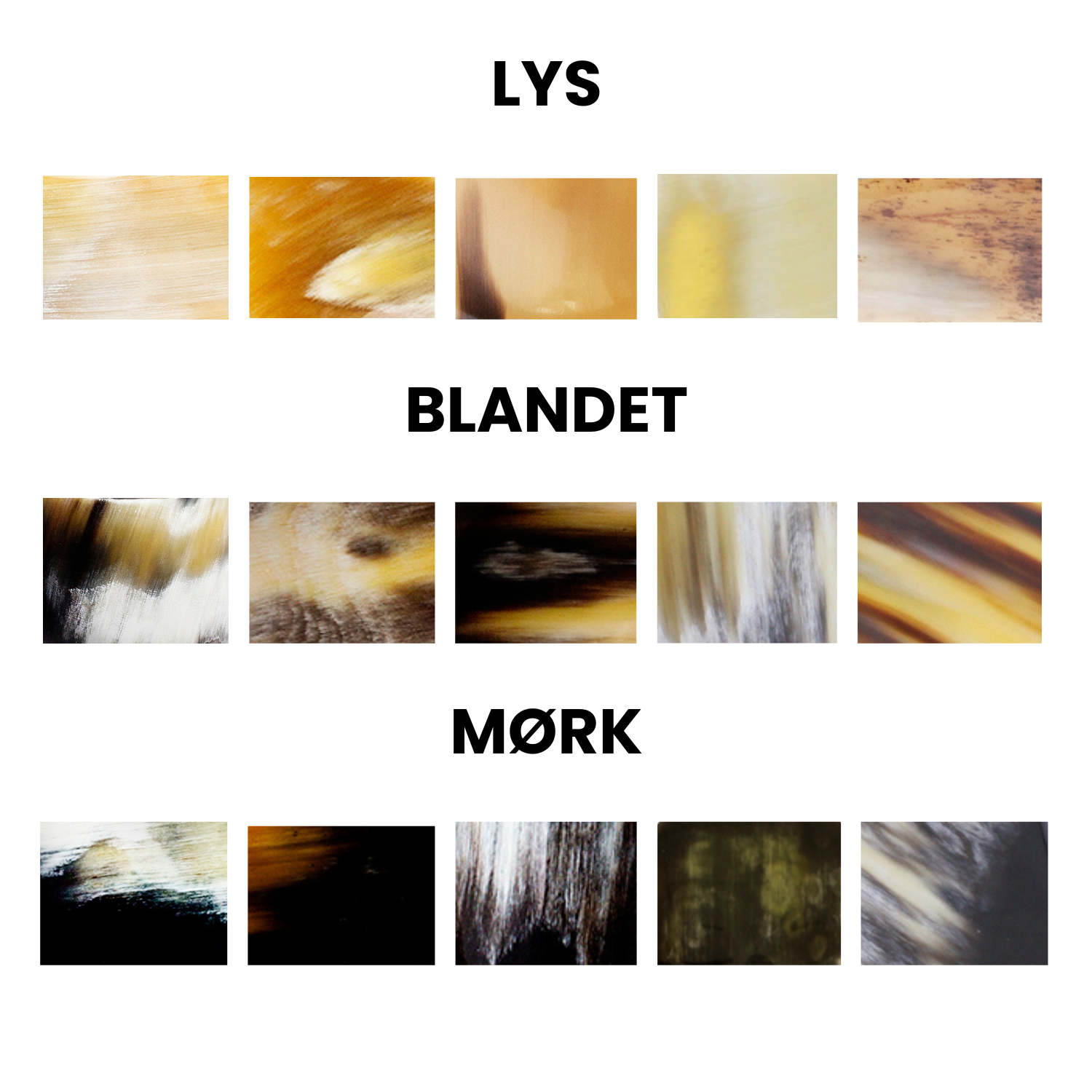 Colour: Light, mixed or dark, as shown in the picture with colour variations.